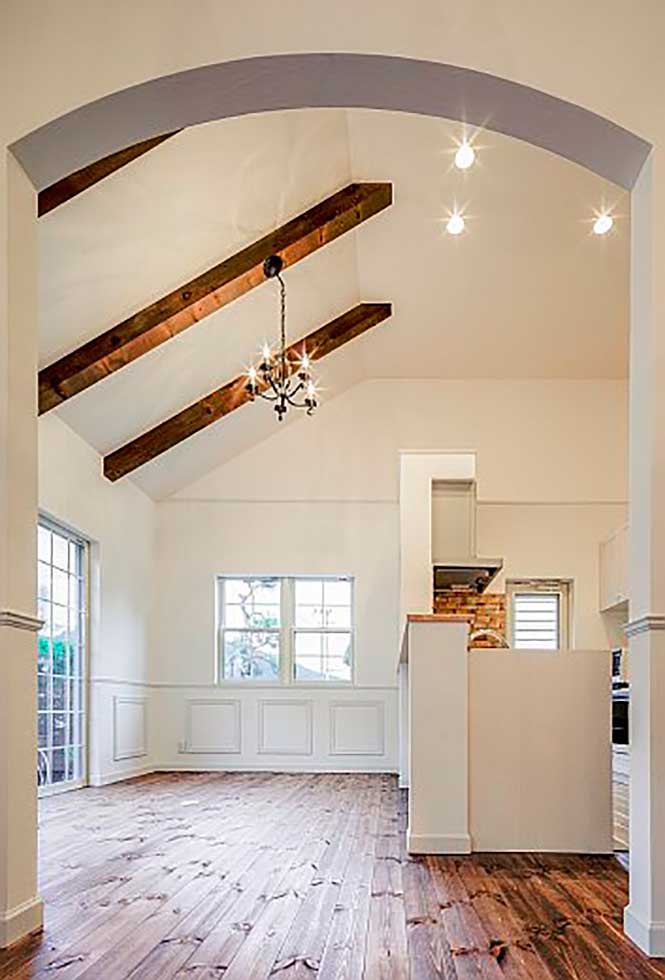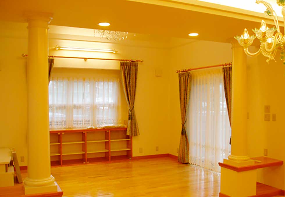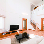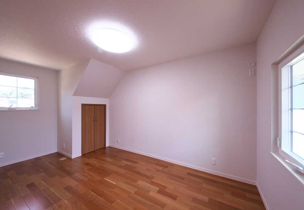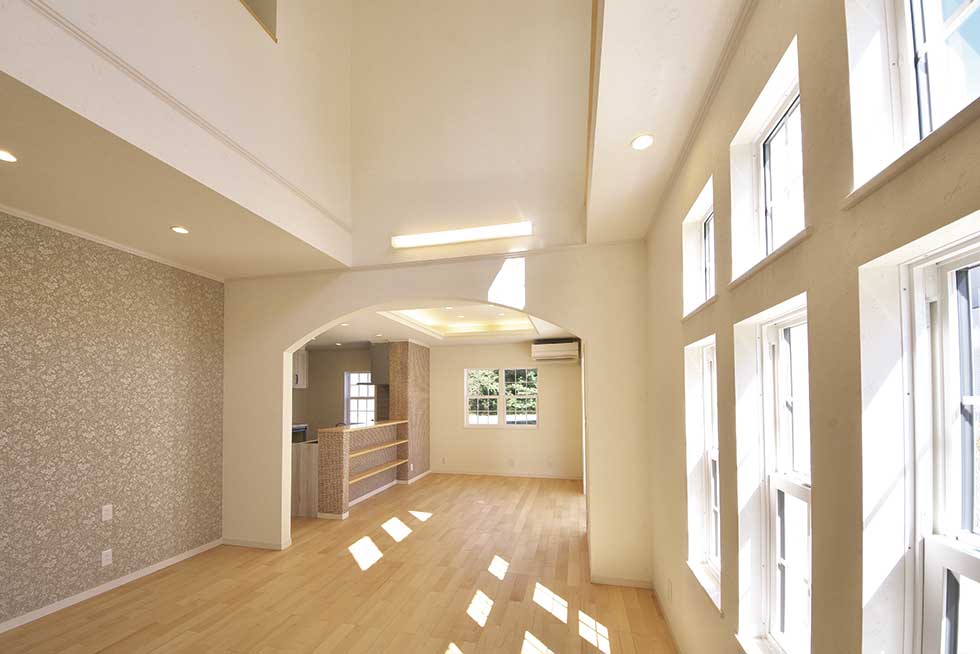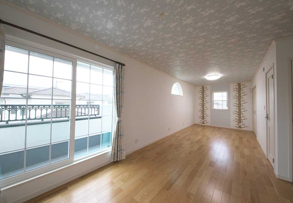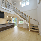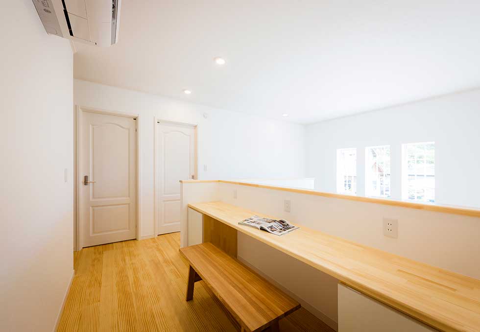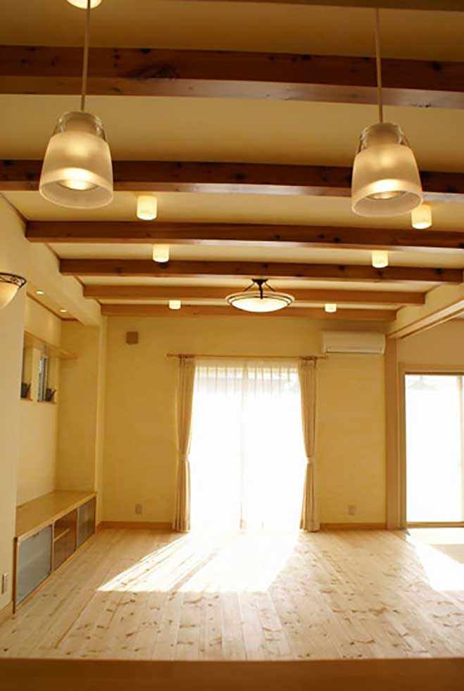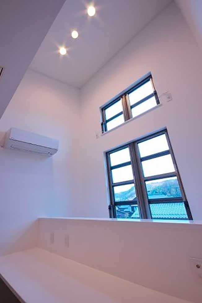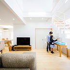 吹抜の空間が大きい為、温水式床暖房を採用し、ドラム仕様の防音室も完備しました。