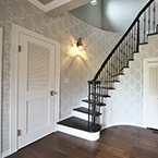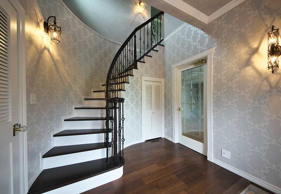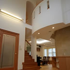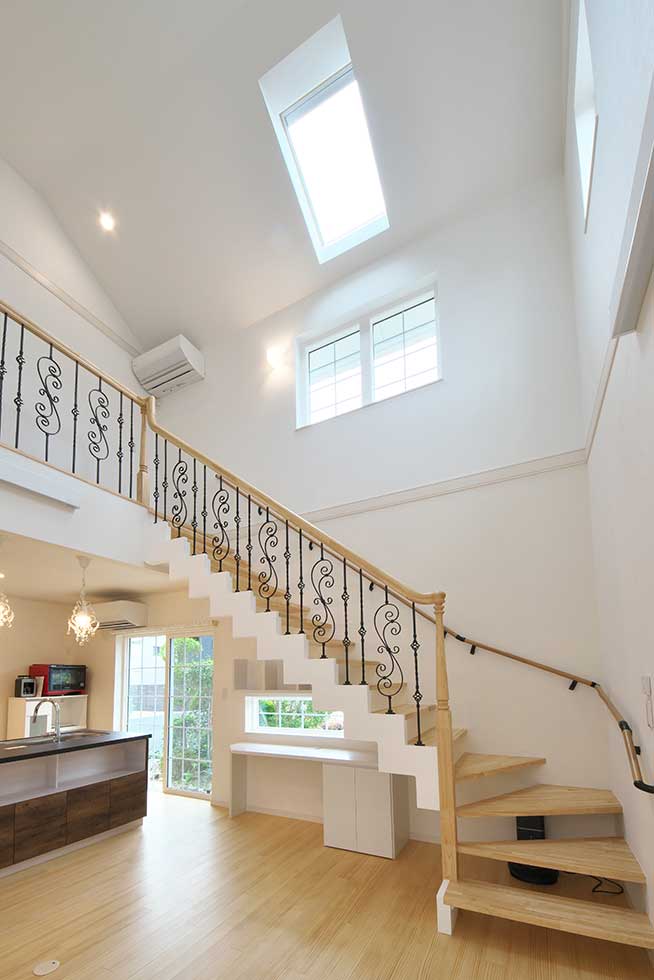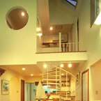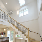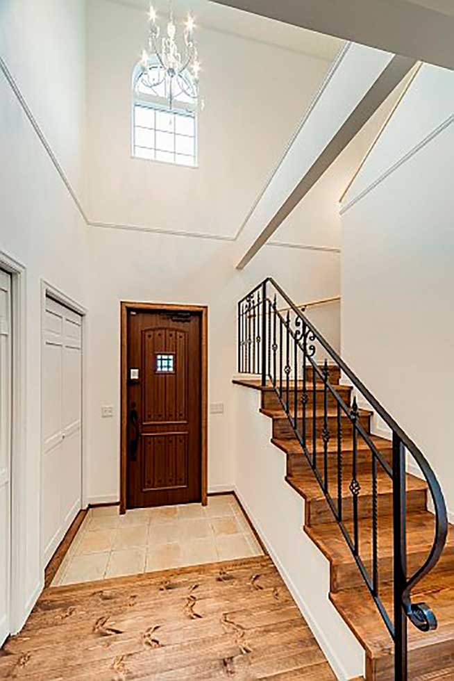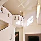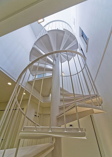 玄関ホールには、3階まで続く螺旋階段がアクセントになっています。