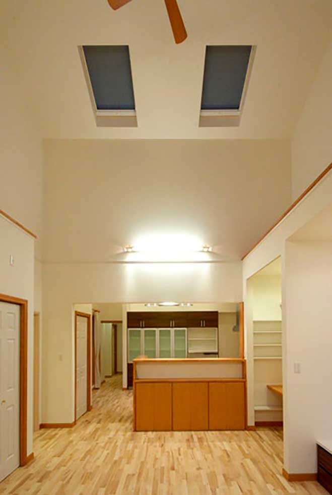 屋根は二重屋根とし通気層を確保、断熱性、遮音性を高めた住宅です。