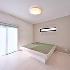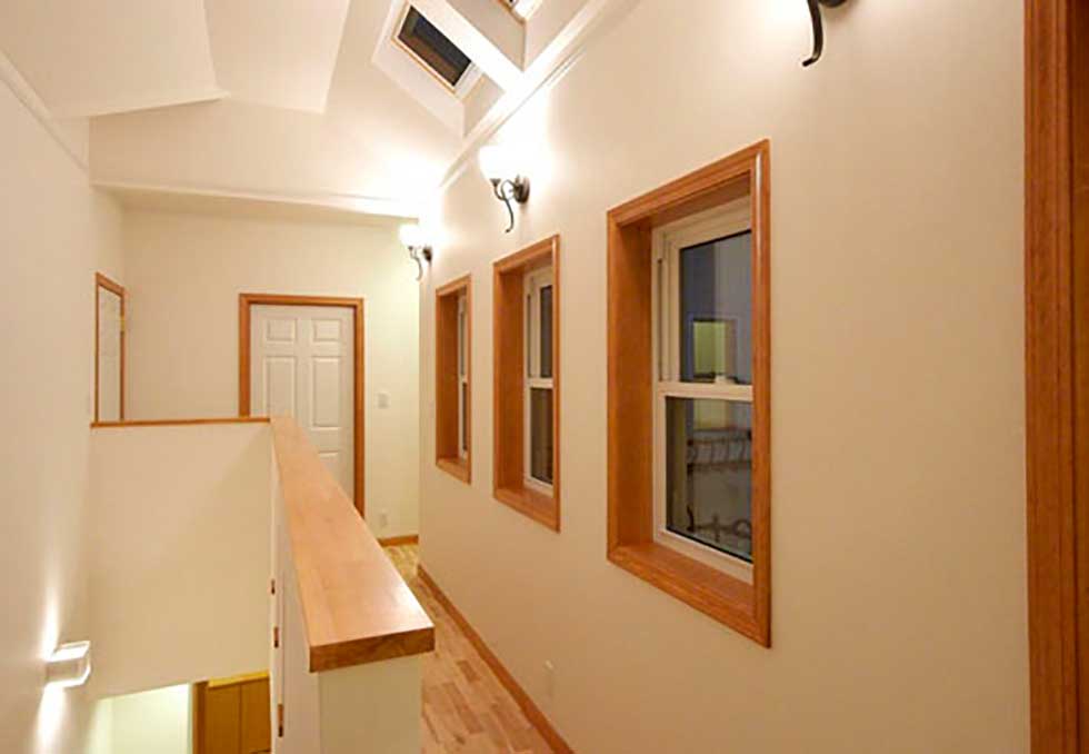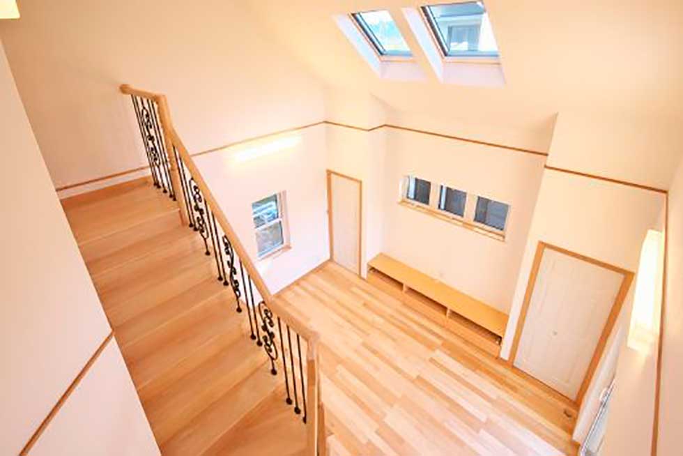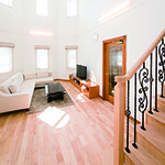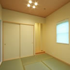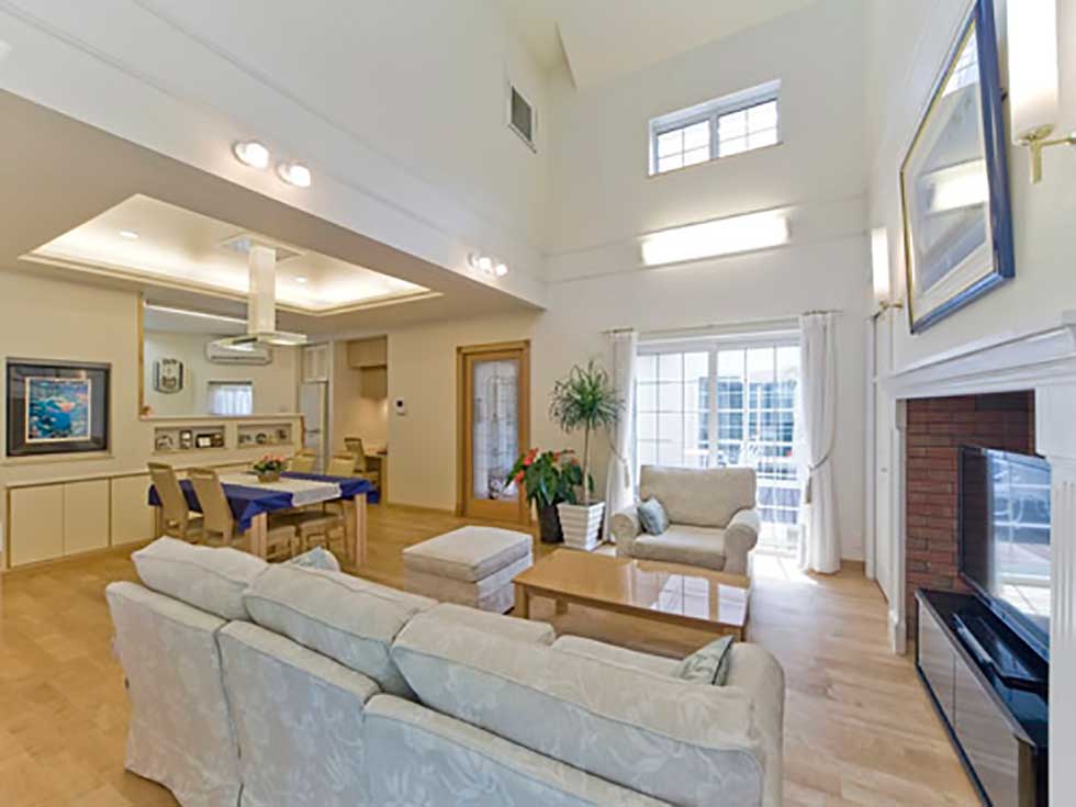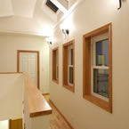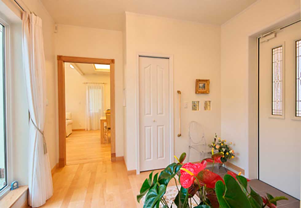 発泡ウレタンの断熱材や、窓ガラスも全て輸入樹脂サッシ(Low-Eガラス) 熱交換型換気システムとし、次世代省エネルギー基準以上の省エネルギー住宅となっています。