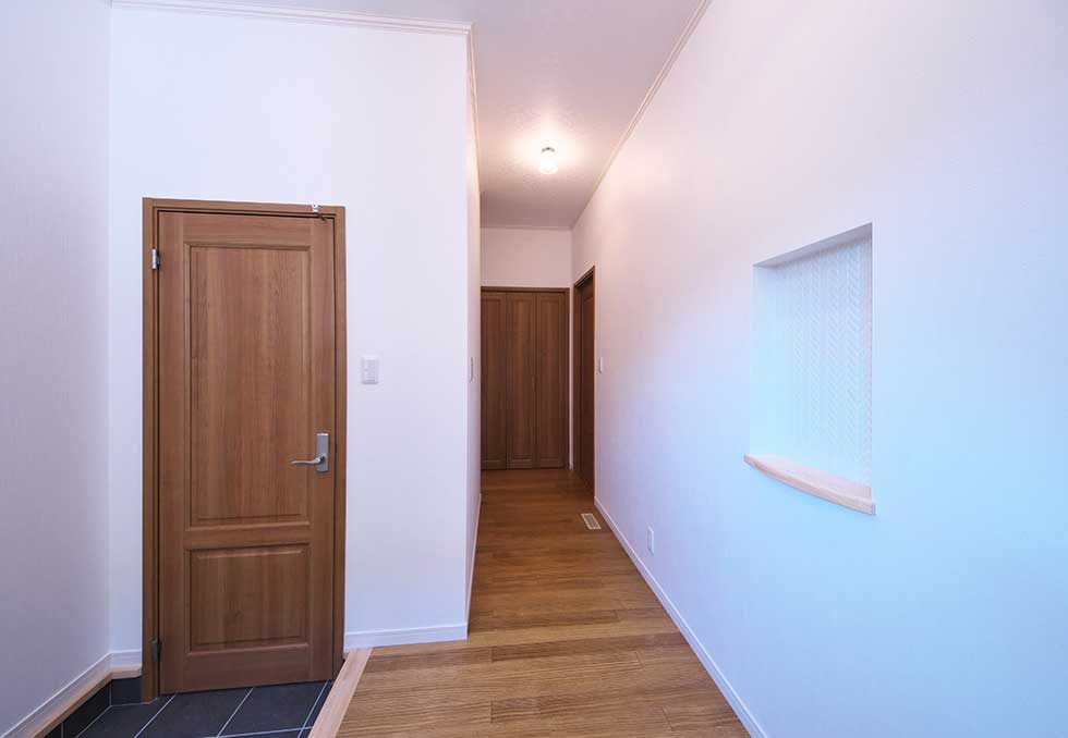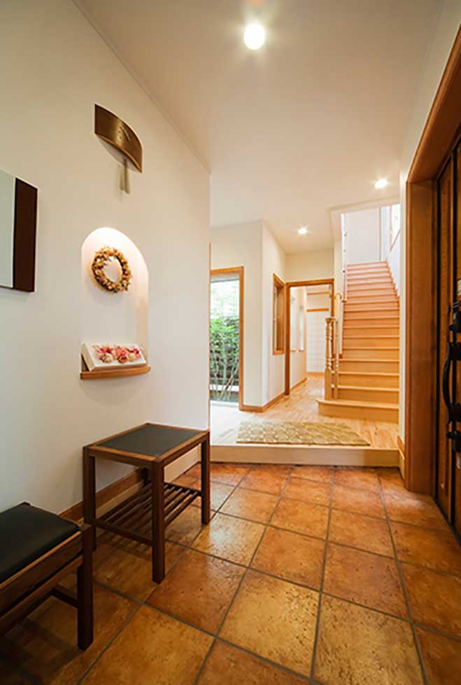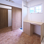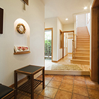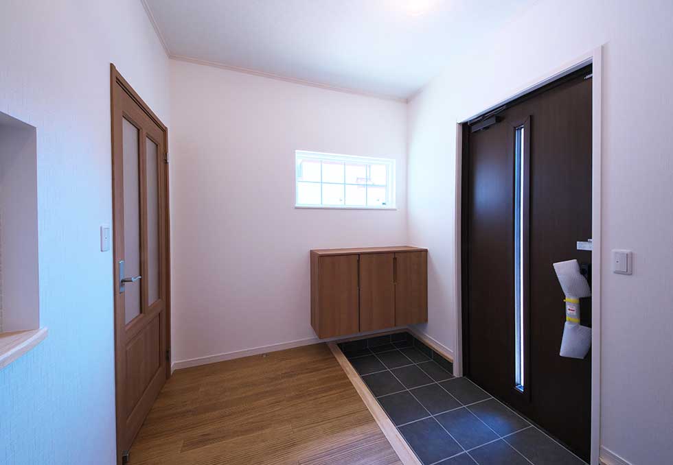 通常設計施工させて頂いております住宅も全てバリアフリーですが車イスが前提条件ですので、今回は玄関部にも段差をなくした完全なバリアフリー住宅です、屋内からの外出も車イスで簡単に出かける事が出来ます