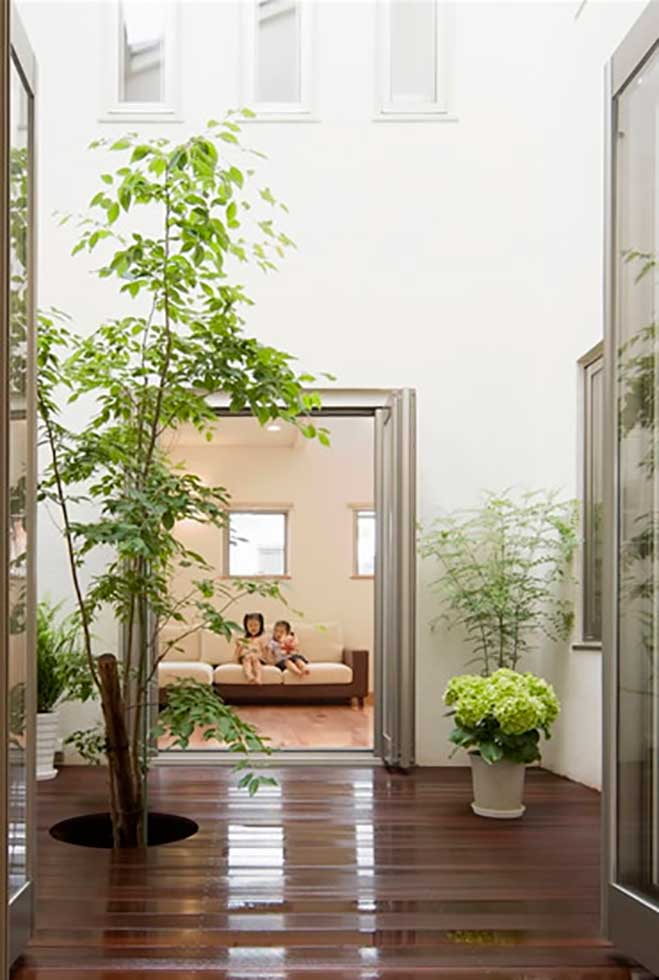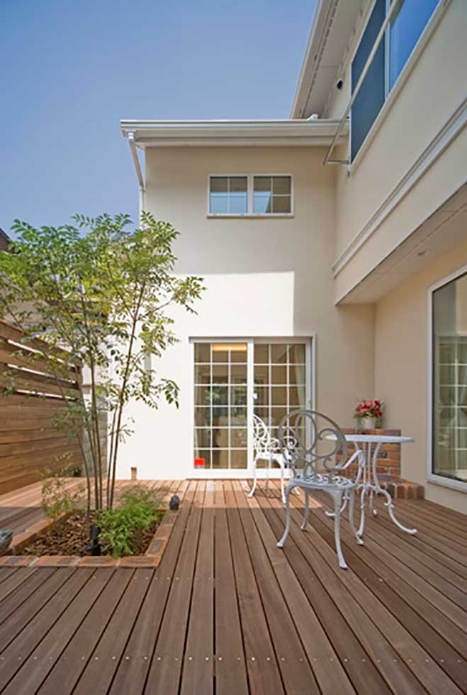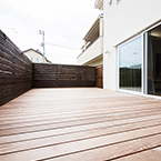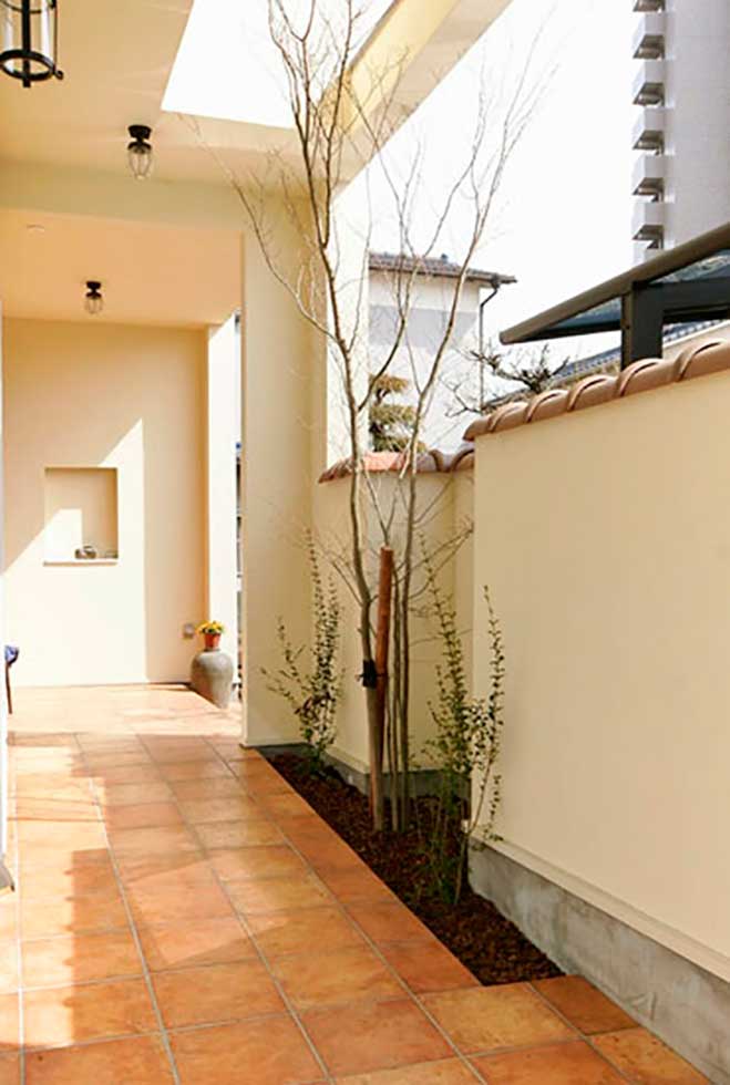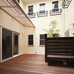 西日をカットする為とプライバシーの確保の為あえて西側道路の窓を最小限に抑えパティオ形式のプラントしました。