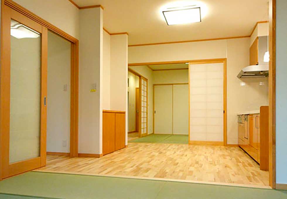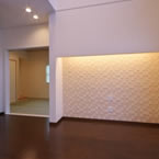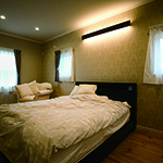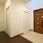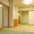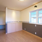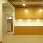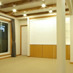 寝室以外に訪問介護でのリハビリ室をもうけ、屋内動線も全て自力での車イスで移動出来る廊下巾や扉の開口巾を確保しています