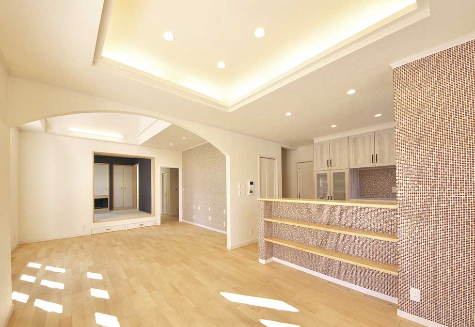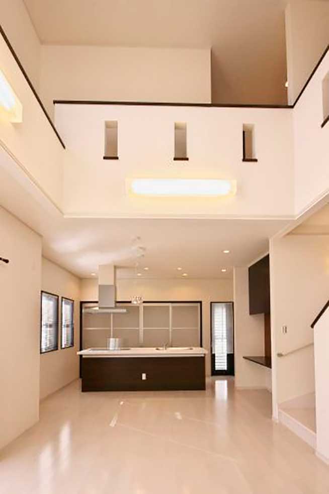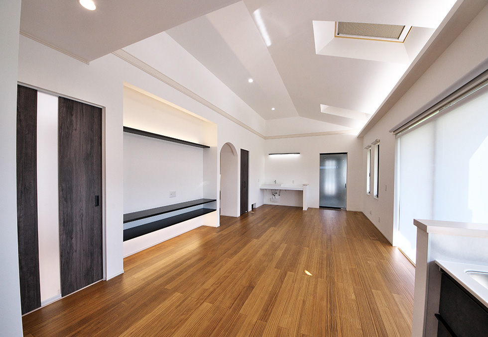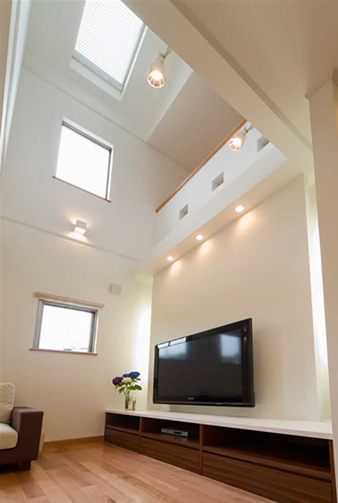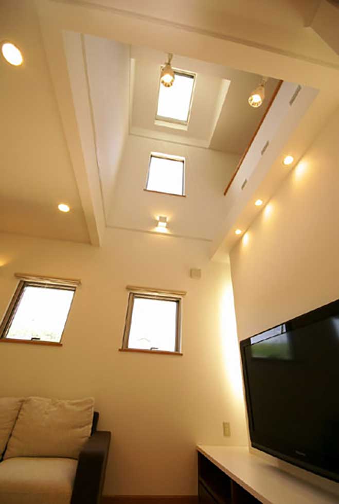 ソーラーパネルを乗せた、ZEH仕様の住宅です 私の物件は、どの住宅もソーラーパネルを乗せれば 「ZEH住宅」となる仕様での設計施工です リビングダイニングを間接照明として、アクセントを付けさせて頂きました
