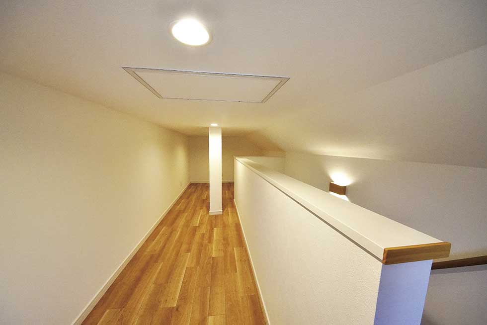 また奥様が階段で上がれる小屋裏収納も4.6帖程確保しています