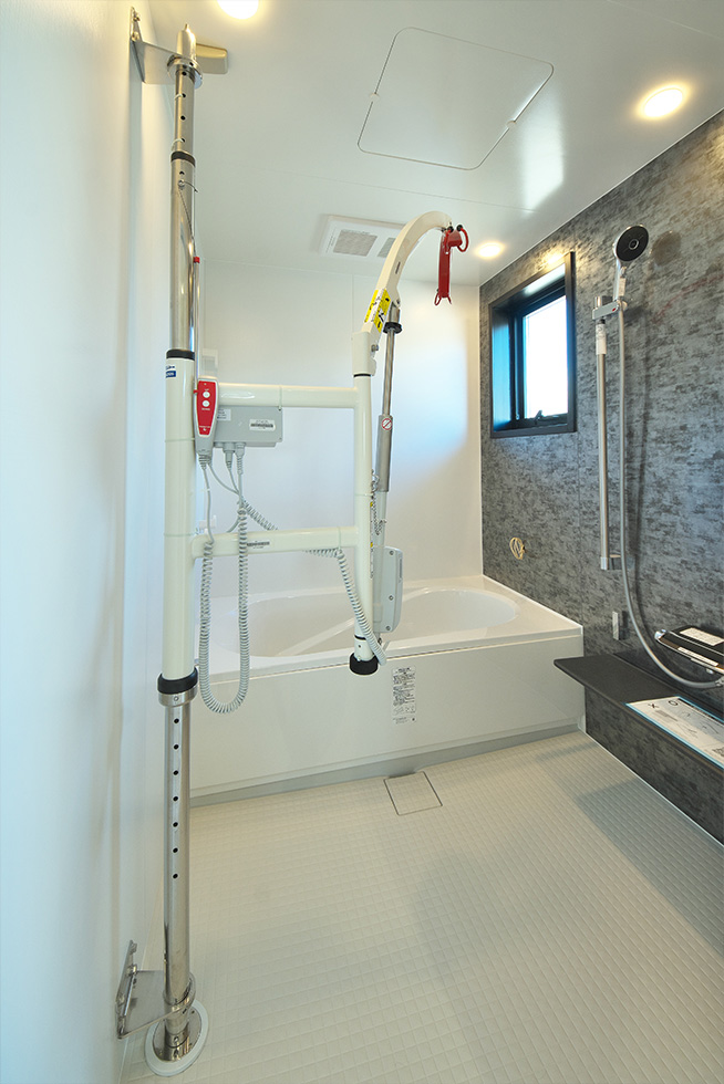 浴室は電動リフトで浴槽へ入れるようになっており